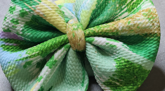 Festive Fashion: Green Hairbows with a Brushstroke Pattern That Celebrate the Fun and Spirit of St. Patrick's Day!