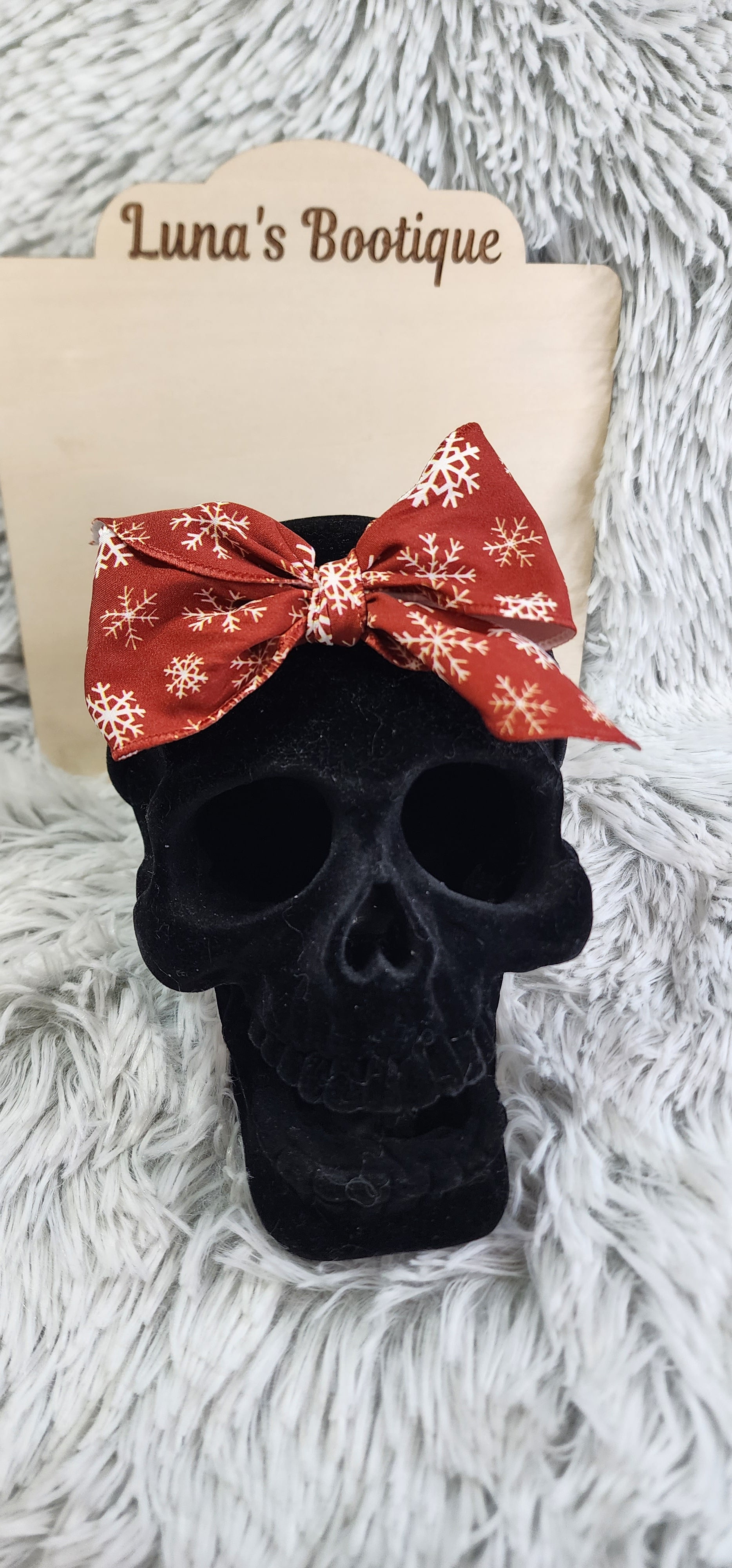 Cranberry hue, winter, snow flurries, hair bowLook no further for the perfect winter hair-do! The Cranberry Flurries hair bow offers a muted cherry-red cranberry hue, looks like it's been sprinkled with snow flurries, and has a cozy winter feel. Put the perfect finishing touch on your winter wonderland look!