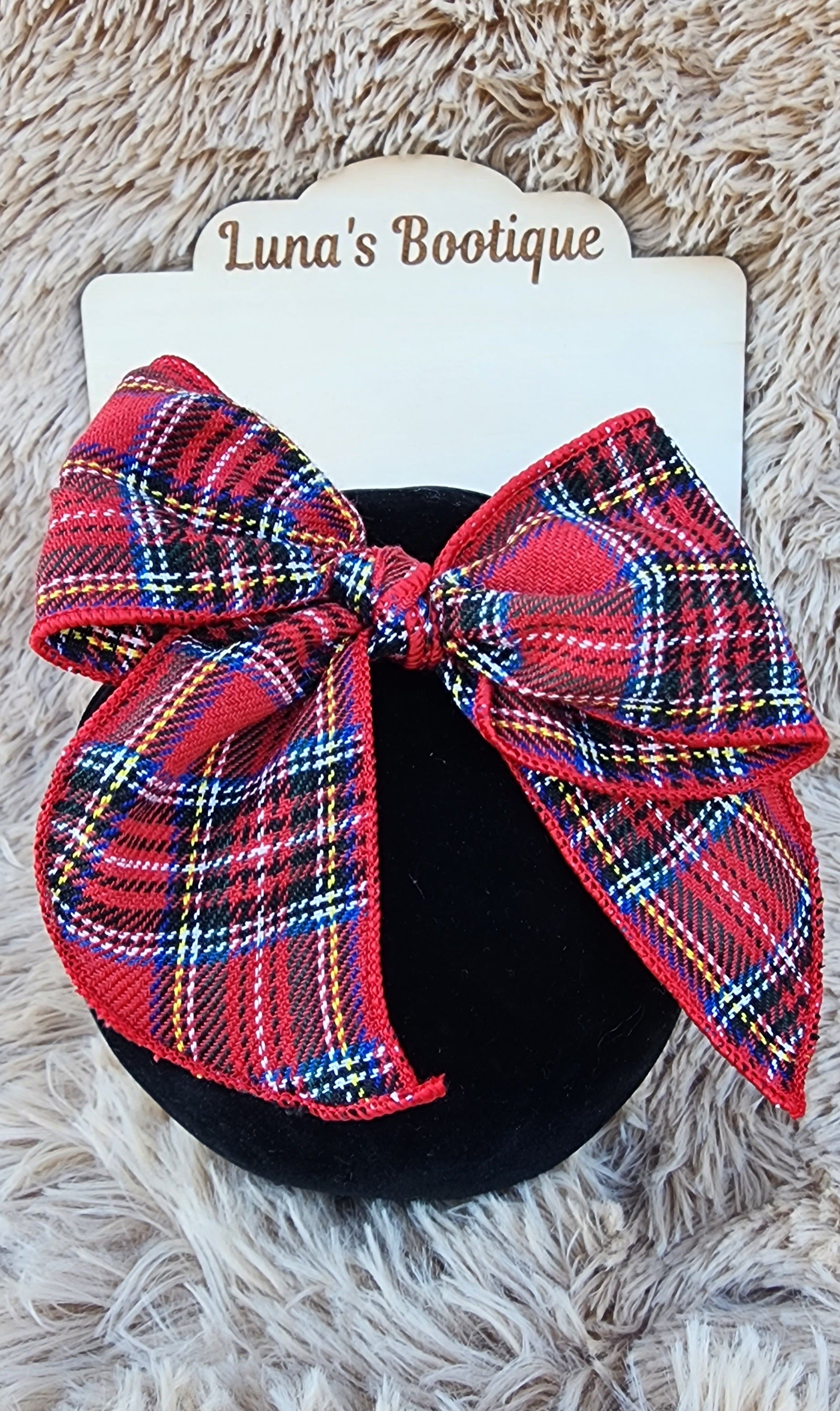 Red Plaid Linen Bow